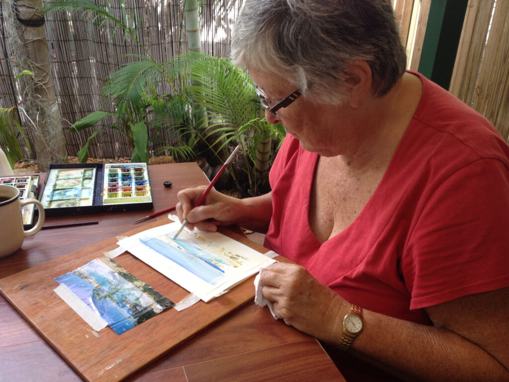 A closed group of twelve to fourteen artists who meet weekly to support one another in furthering skills in watercolour painting.