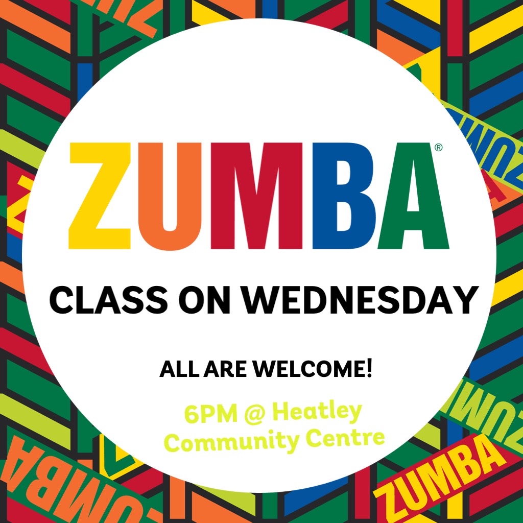 45 min – Zumba class at Heatley Community Centre- cost $10 to cover hall, insurance and registration costs